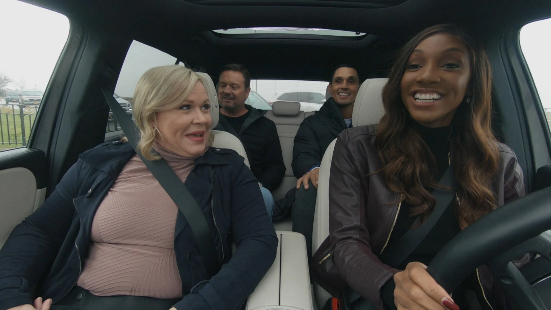 From behind the wheel of the first-ever Mercedes-Benz GLB, Maria Taylor says "Nothing But Yes" to Holly Rowe, who has her try bumper cars on ice with ESPN college football analyst David Pollack and former Oklahoma Sooners coach Bob Stoops. But her day isn't done there -- she then tries pool trick shots with Chris Fowler.